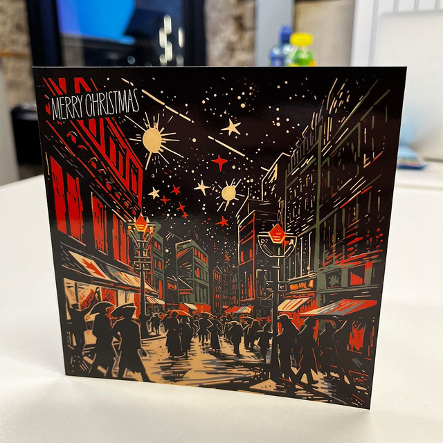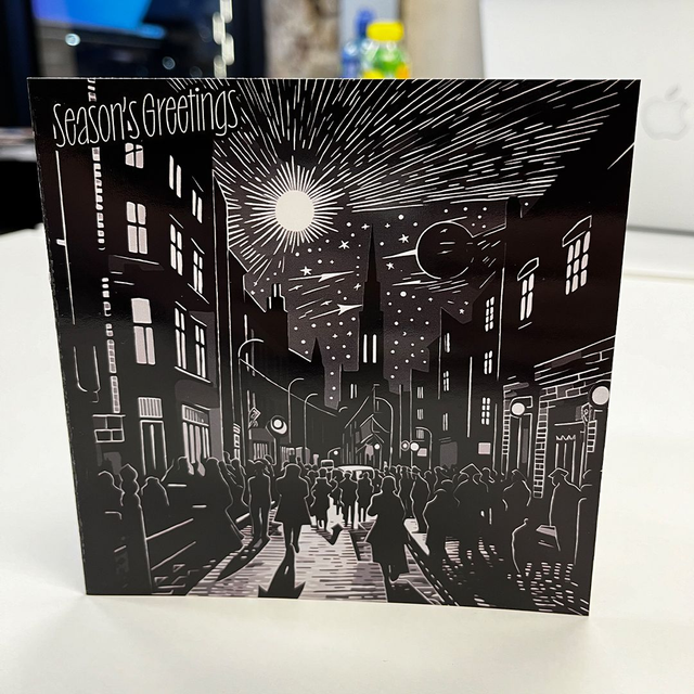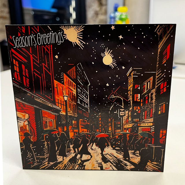 Bespoke Holiday cards with the inscription inside "May your holiday season sparkle with moments of love, laughter, and goodwill."
